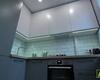 Фасад кухни выполнен из крашенного МДФ, который отлично показывает себя на практике. Вы получаете действительно качественную матовую покраску, которая будет оставаться таковой на протяжении многих лет и не потребует никаких дополнительных изменений. Такой материал не боится влаги или перепадов температур, он поддается простой очистке. Корпус выполнен из ламинированного ДСП, поэтому кухня обладает хорошими показателями жесткости и выносливости. Имеется столешница EGGER под окно, что делает небольшое пространство более оригинальным и практичным. Также здесь используется МДФ Egger, которое делает кухню более привлекательной.