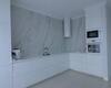Угловая кухня без ручек, фасады выполнены из глянцевого акрила Senosan (Австрия), столешница из кварцевого агломерата. Фурнитура BLUM.